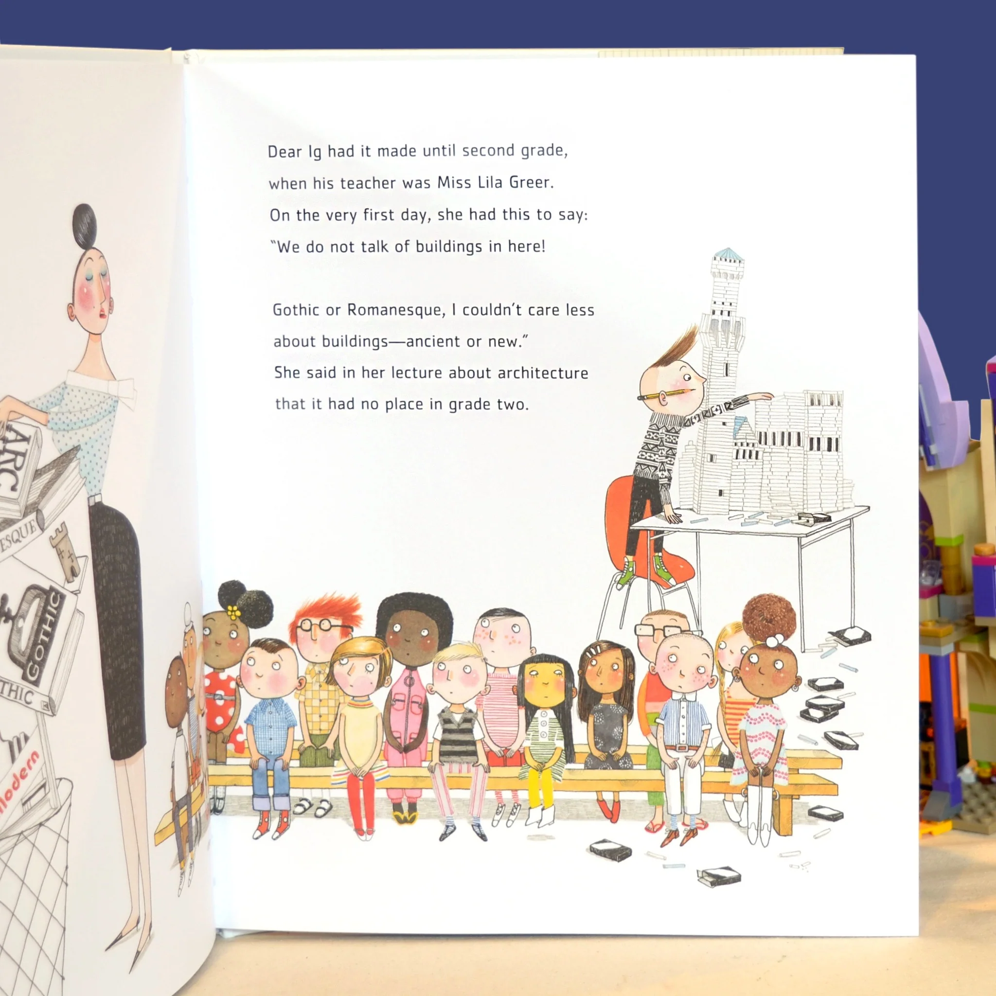 Some kids sculpt sand castles. Some make mud pies. Some construct great block towers. But none are better at building than Iggy Peck, who once erected a life-size replica of the Great Sphinx on his front lawn! It’s too bad that few people appreciate Iggy’s talent—certainly not his second-grade teacher, Miss Lila Greer. It looks as if Iggy will have to trade in his T square for a box of crayons . . . until a fateful field trip proves just how useful a master builder can be.