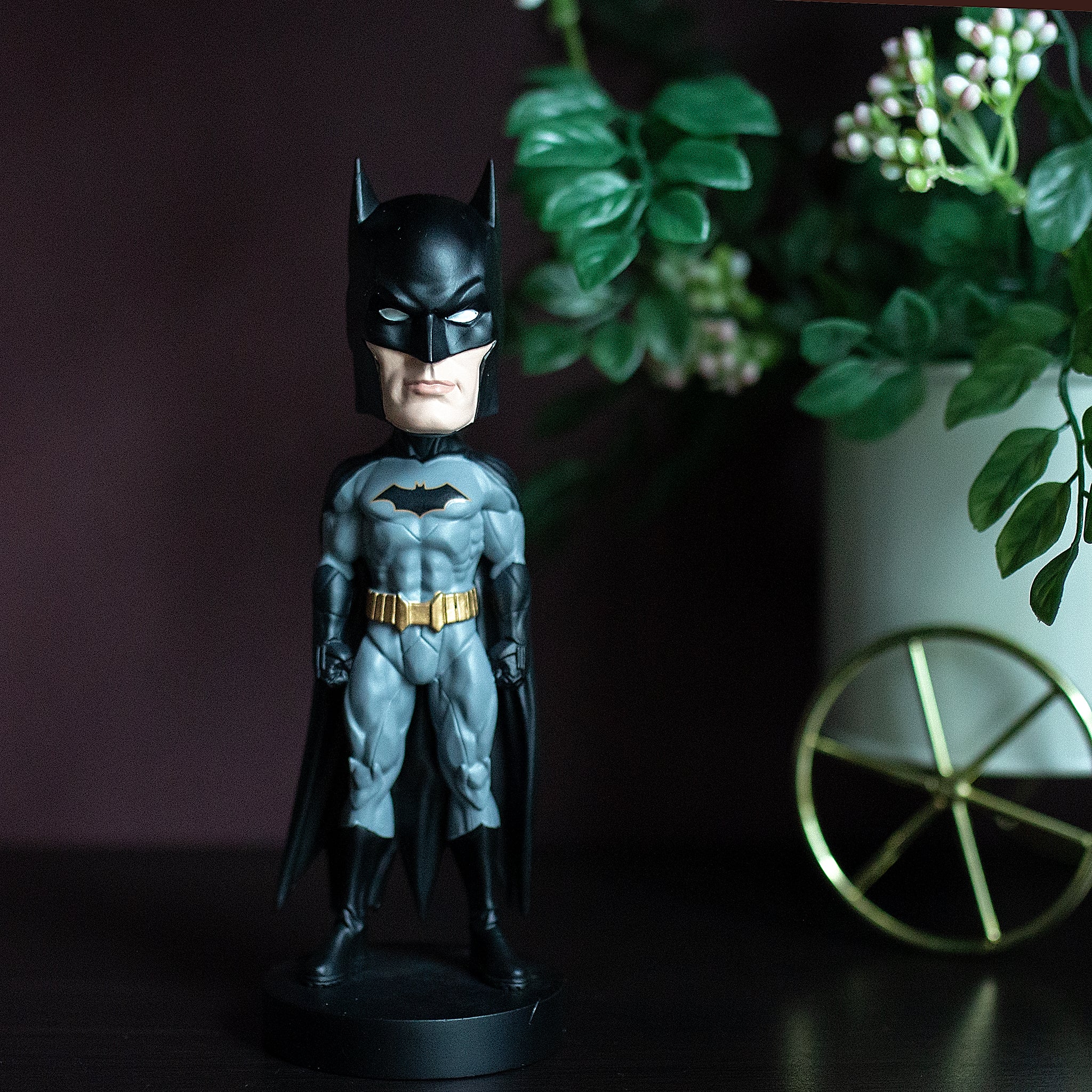 In his batsuit, wide cape, gloves, boots, close-fitting cowl and gold belt, Bobblehead Batman cuts a mysterious figure. Ready to save Gotham city, our muscular superhero is ever the man of the moment.