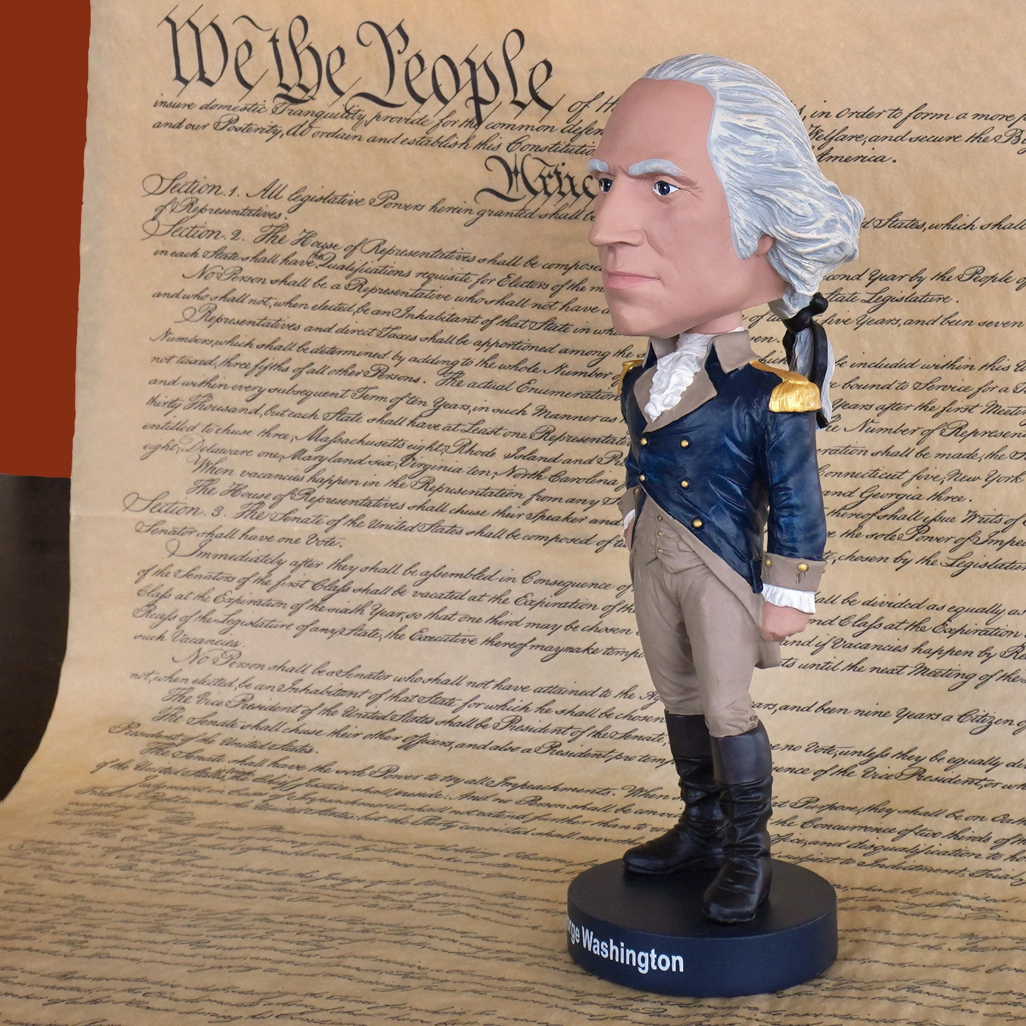 Our first president said, "It is better to offer no excuse than a bad one." His bobblehead likeness nods in agreement. A fun gift, this mini George Washington makes a great accessory for office, bookshelf and home.