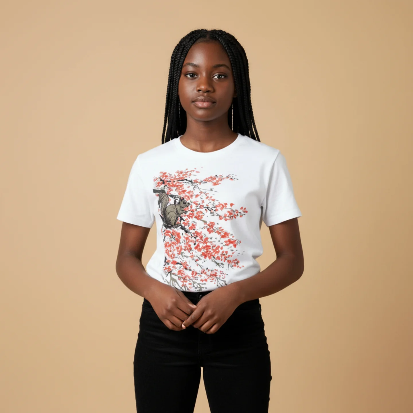 Celebrate the beauty of spring with this white children’s T-shirt featuring a charming cherry blossom and squirrel design inspired by Washington, D.C.’s iconic blooms. Soft and comfortable for everyday wear, it brings a touch of seasonal color and joy to any outfit. Perfect for school days, family outings, or museum trips, it’s a sweet reminder of one of the capital’s most beautiful traditions. Also available in navy blue.