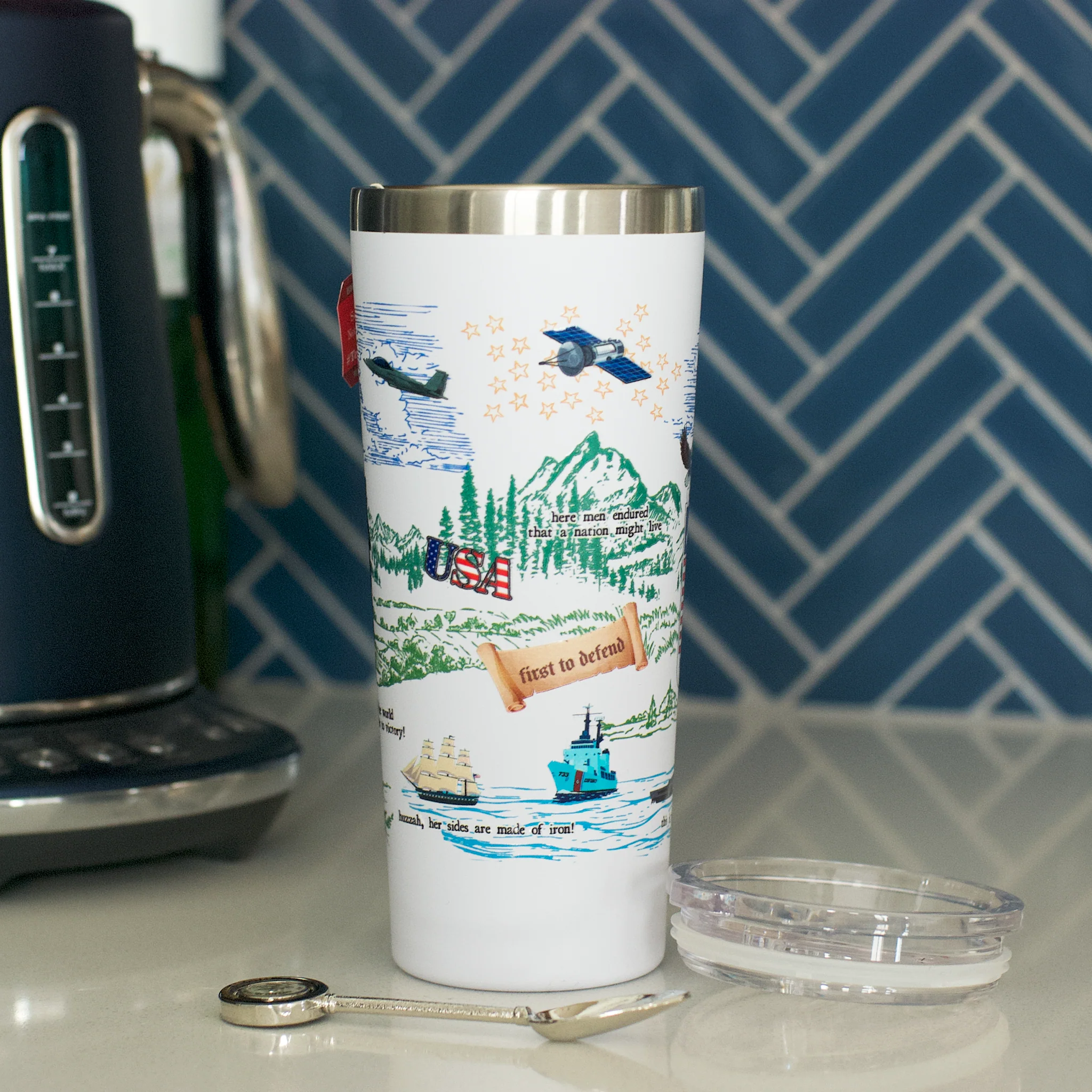 Whether you're bringing a hot beverage or a chilled one, we've got you covered with our Liberty Crest tumbler. Show your support for the United States Army with this colorful and practical travel mug. It featurers our liberty crest, which commemorates the 250th anniversary of the United States Armed Forces.