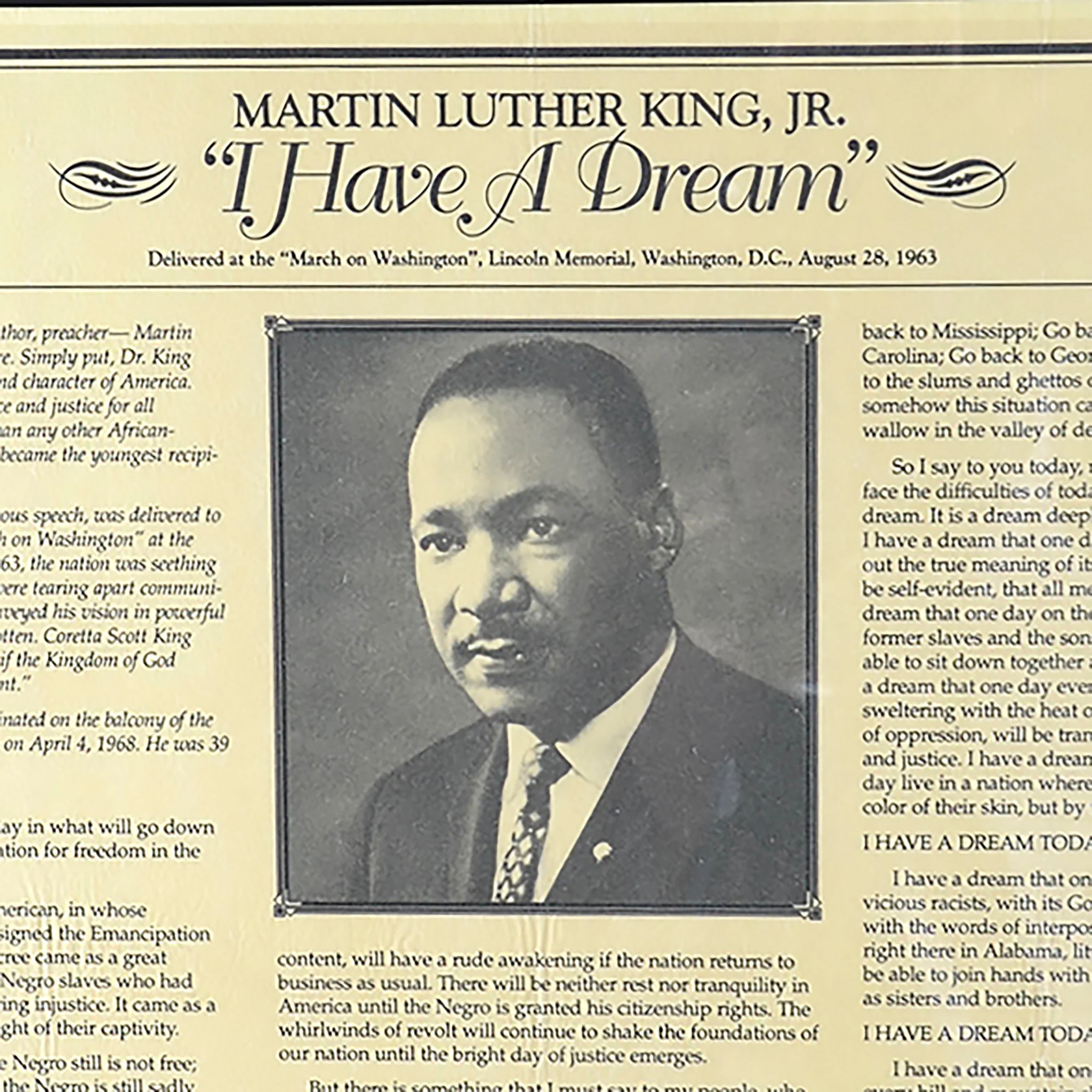 - I Have A Dream Speech on Parchment Paper: 15 X 13 inches, unframed, single page in envelope