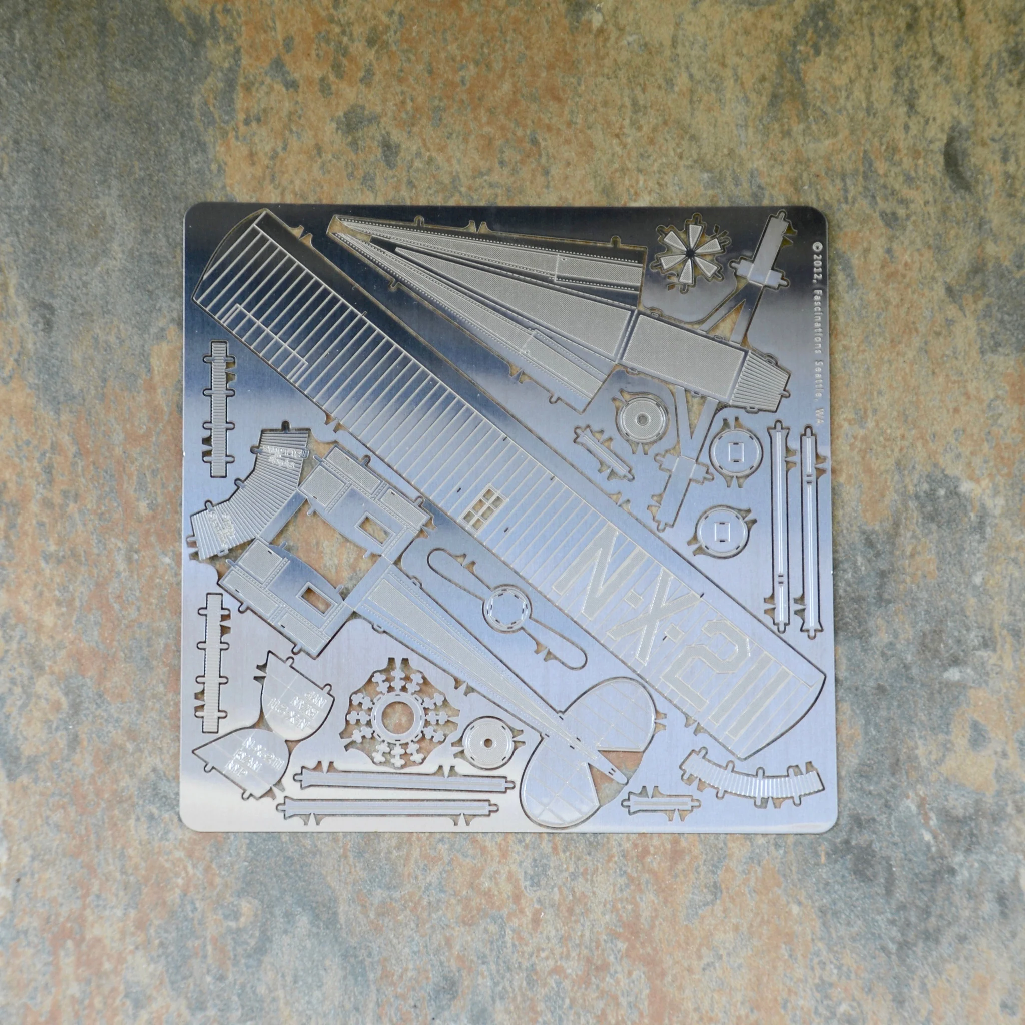 The Spirit of Saint Louis made the first non-stop transatlantic flight in 1927. Like the original, this Spirit of St. Louis model is intricately detailed. It consists of about 15 pieces on one sheet of metal. Pop out the pieces, bend the tabs, and fit them together as shown in the simple pictorial instructions.