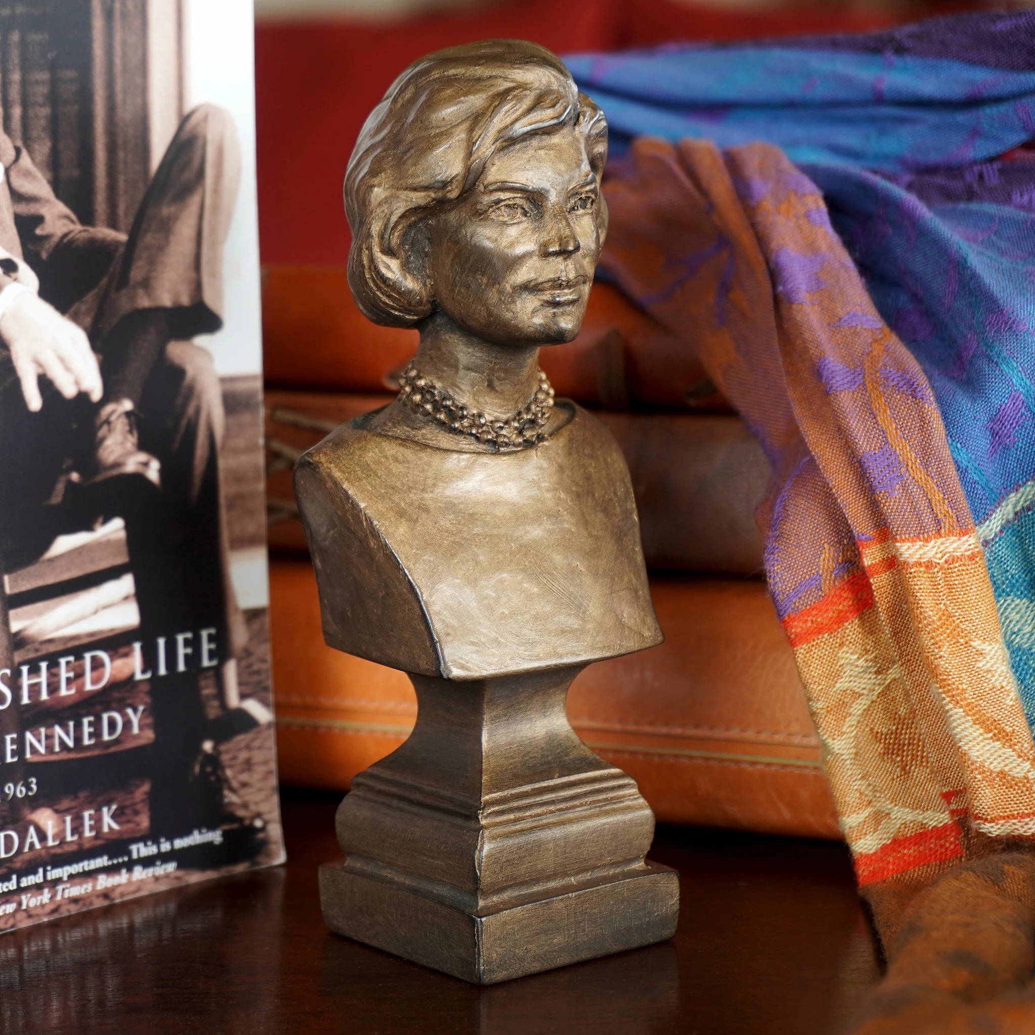 A delightful addition to desk, office, or bookshelf, this bust of cherished first lady Jackie Kennedy is a fitting tribute to a remarkable woman who led an extraordinary life. Proudly made in the U.S.A., it makes a wonderful gift.