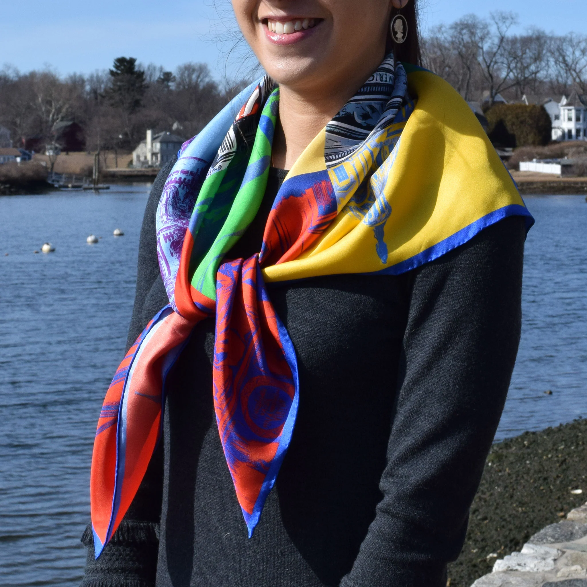 This colorful square scarf from our Capital Landmarks line of gifts is patterned with some of our nation's most recognizable monuments and buildings in vivid pop art renderings. It’s a lively piece to remind you of Washington, D.C.